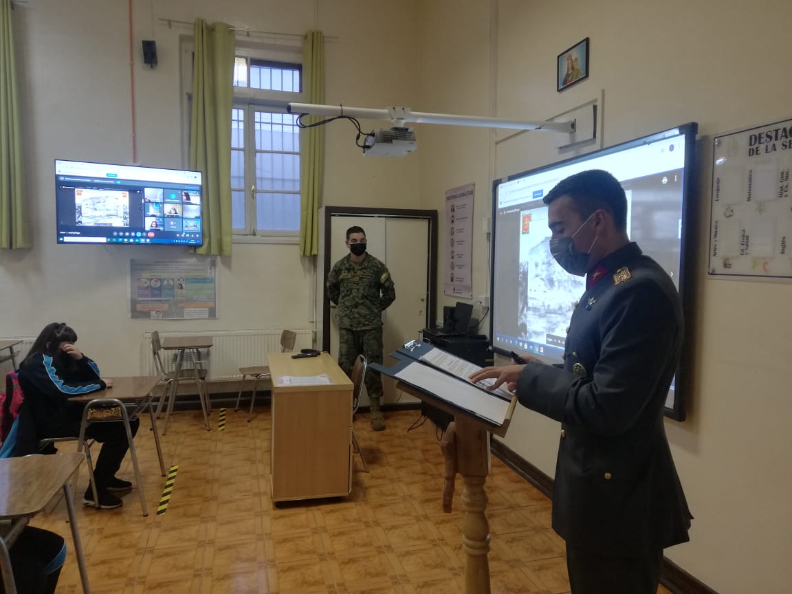 En dependencias del Instituto Sagrada Familia y bajos estrictos protocolos sanitarios, el Subteniente Jorge Poblete Jara, perteneciente al Regimiento N°10 "Pudeto" realizó alocución patriótica con motivo del Asalto y Toma del Morro de Arica.